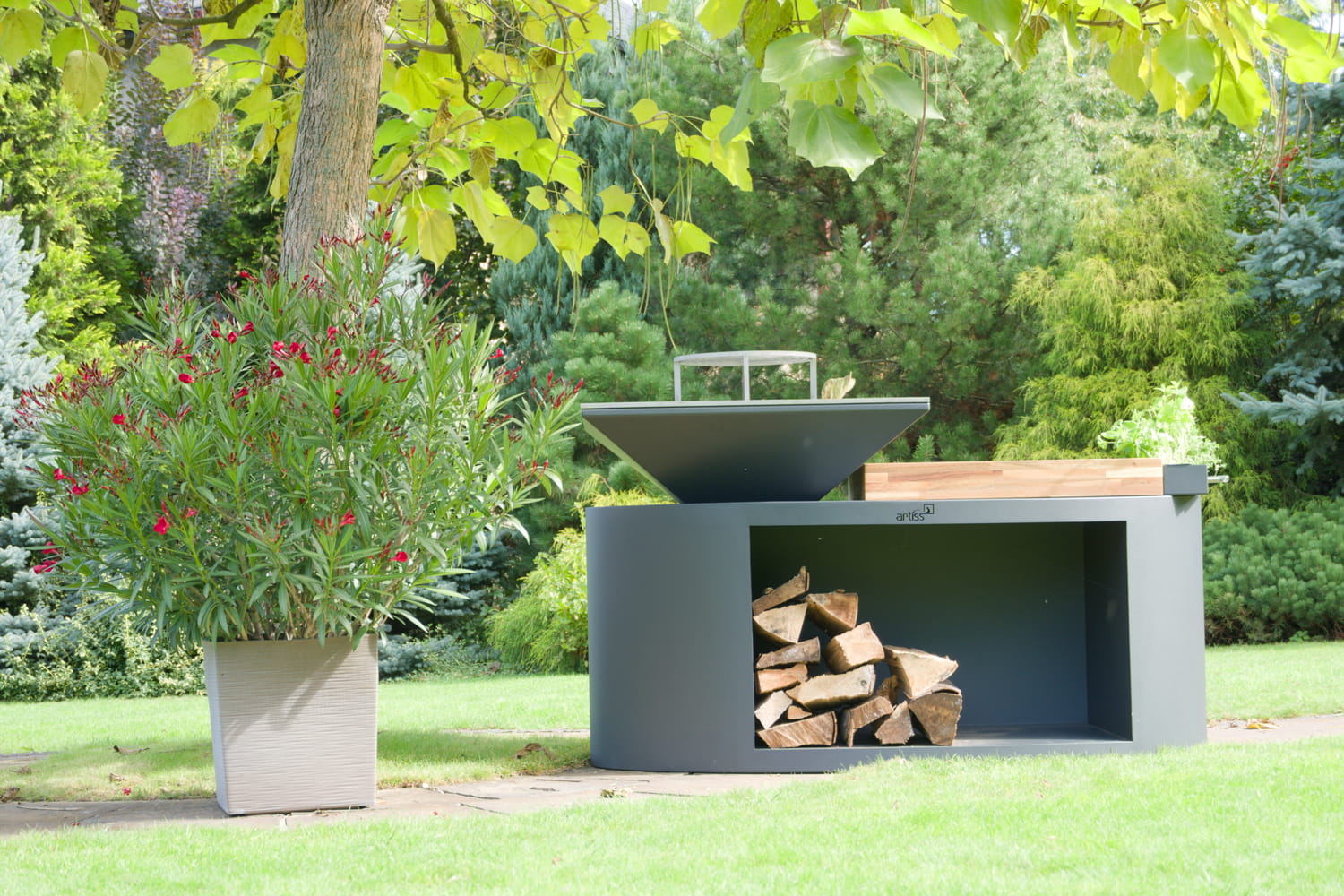ARTISS ist ein einzigartiges Gerät zum Kochen im Freien mit einzigartigem Design, schönem und modernem Design, Ästhetik und funktionalen Lösungen. Dies ist ein vielseitiger und angenehmer Außengrill zu jeder Jahreszeit.